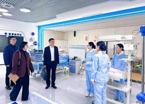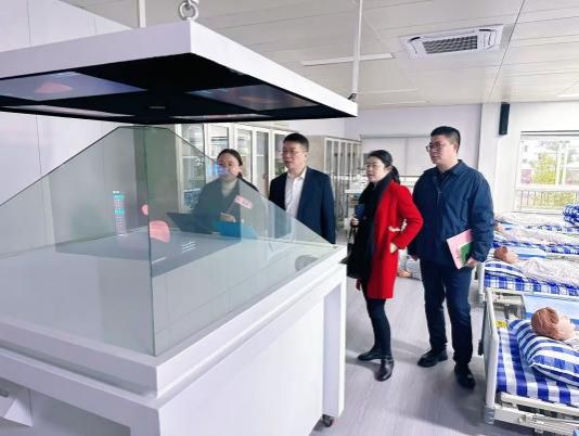 随后,沈忠华一行实地参观了护理专业实训场所,重点考察了虚拟仿真实训室、基础护理实训室及智慧康养实训室的教学设施,对学校的实训设备及浓厚的护理文化氛围表示充分肯定。